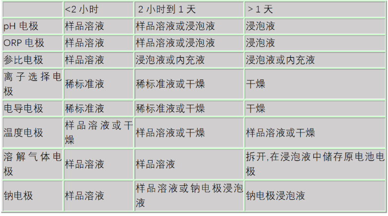 1.以供pH电极、ORP电极及参比电极放入其中储存。由于这些浸泡液都是缓冲溶液,具有合格的pH值和较强的离子活度,因此能够保持pH敏感玻璃和参比盐桥处在良好的状态中。电导电极,温度电极和溶氧电极都需要干燥储存。当这些电极在持续使用过程中,需要短期储存一下时,建议放在测试溶液或标准液中。绝大部分离子选择电极都要干燥储存。它们在测试之前,需要在非常稀的标准液中浸泡15分钟到60分钟。如果它们已经被持续使用了2到4个小时,则应把它们放置在非常稀的标准液中浸泡一段时间,然后再使用。如果要储存4个小时以上,应把电极冲洗过后,然后保持干燥储存。